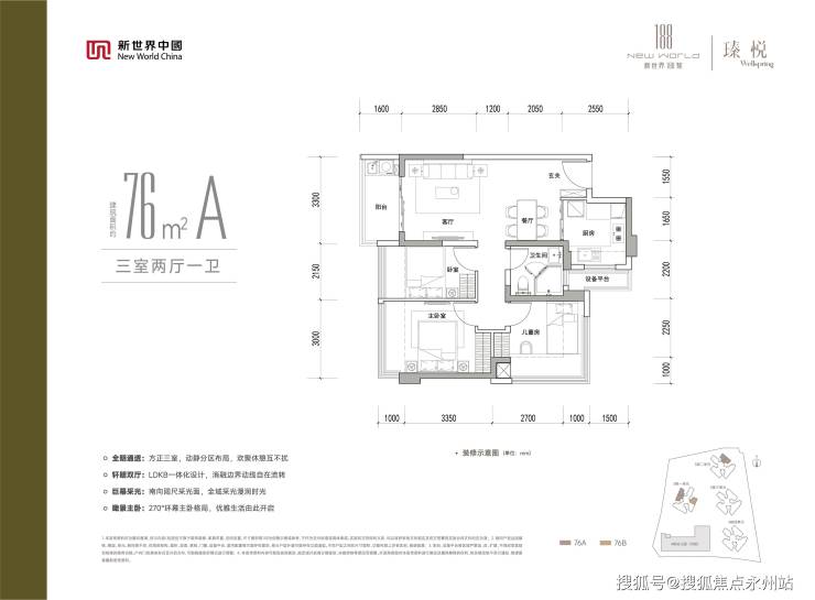 76㎡三房一卫:入门级刚需爆款户型,格局方正无浪费空间,动静分区合理,小户型也能实现独立三房,满足单身、新婚、三口之家基础居住需求,低总价轻松扎根深圳。