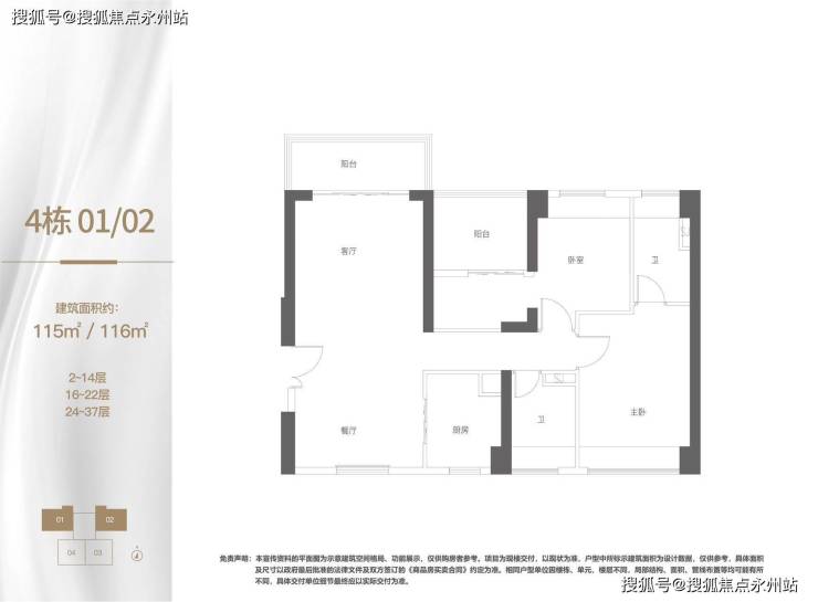 3栋共34层:(15、34层避难层) 4栋共37层:(15、27层避难层)