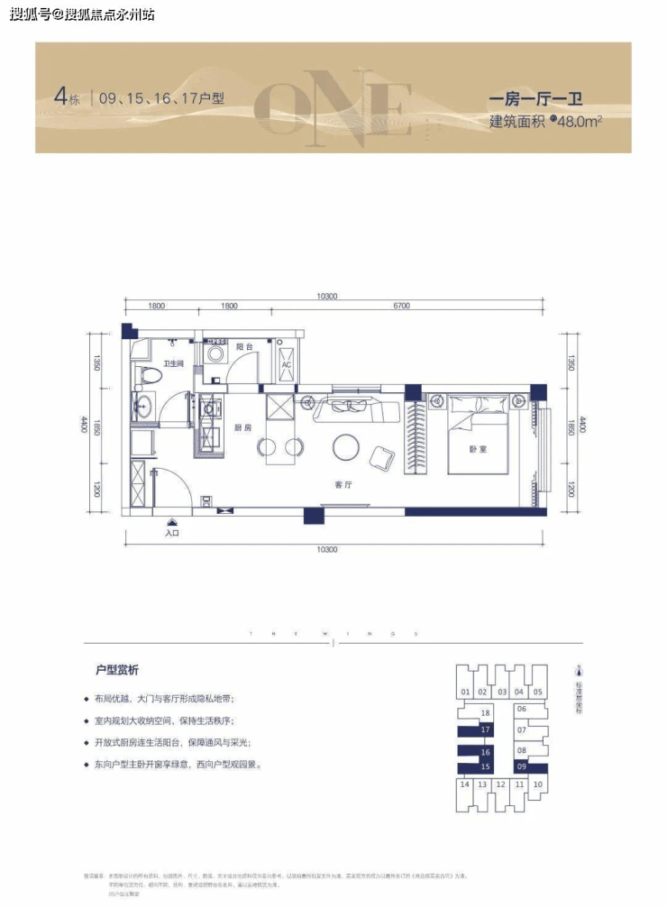 在售公寓户型:精裝一房一厅48㎡