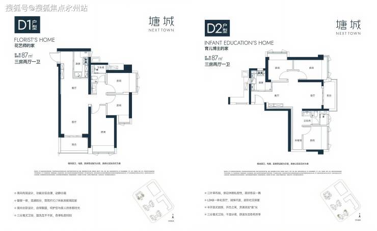 87㎡三房一卫(D1/D2 户型)—— 首改家庭性价比之选