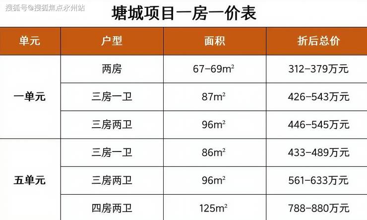 5单元(超高层住宅)主力户型:96㎡三房、117㎡四房、125㎡四房,折后单价5.6万-6.25万/㎡(备案均价基础上叠加 89 折优惠)