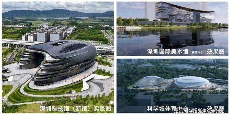 文体配套方面,周边有深圳科学技术馆(外形酷似“大飞船”,2025年5月开馆以来累计接待观众量突破200万人次)、科学城体育中心(在建,将成为可承办国际顶级体育赛事的专业场馆)、深圳国际美术馆(暂定名,已封顶)等,闲暇时可带家人参观科技馆、逛美术馆、参与体育活动,丰富精神文化生活。