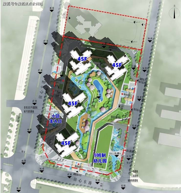 规划参数:总占地面积约1.81万㎡,总建筑面积约14.16万㎡,计容建筑面积约10.4万㎡;容积率5.73,绿化率40%,生态环境良好;共规划4栋45层高的超高层住宅,搭配1所9班制幼儿园,满足家庭育儿需求。