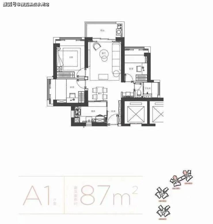 项目住宅总户数为1056户,推出建面约87㎡三房两厅一卫、约96㎡三房两厅两卫、106㎡-121㎡四房两厅两卫,共计3种大类户型。