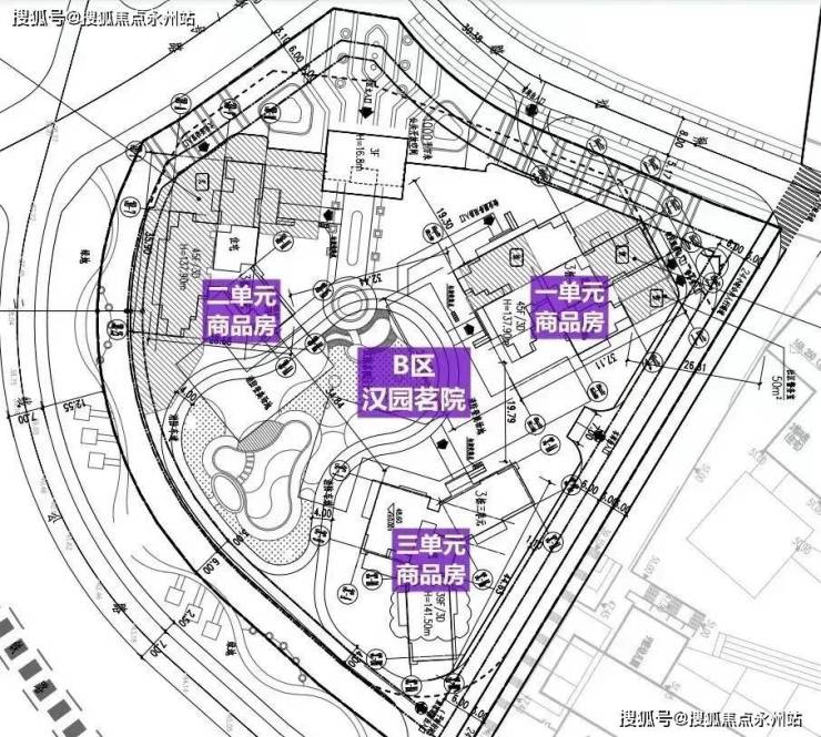 B区容积率6.14,住宅建面62490㎡,无商业配套,机动车位450个。由3栋三个单元及裙房组成,其中一二单元层数45层,三单元层数39层,总户数474套,套内面积小于90㎡的有369套,占比77.85%,均为商品住宅