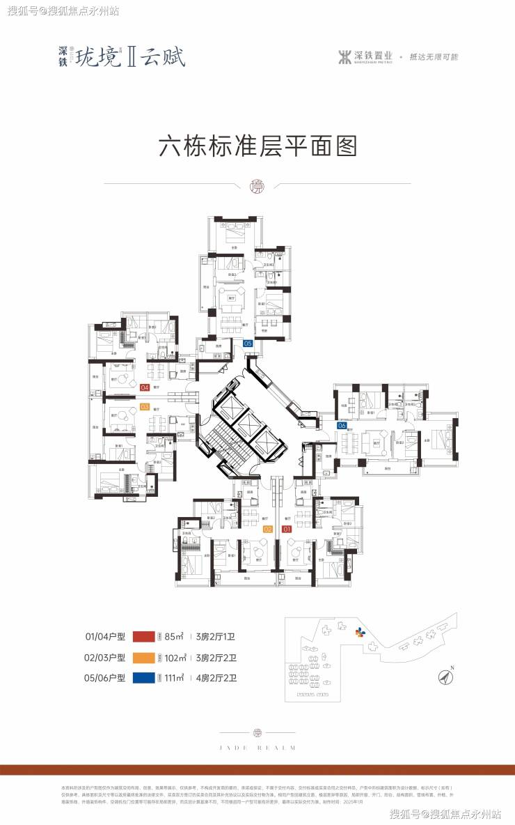 本次推售二期的6栋,共312套房源,面积有85㎡的3房1卫,102㎡的3房2卫,111㎡的4房2厅2卫户型,层高方面,3栋51-55层的超高层住宅,5栋49-55层的超高层住宅,标准层高3米。