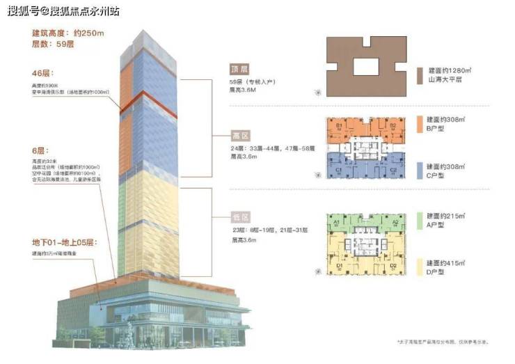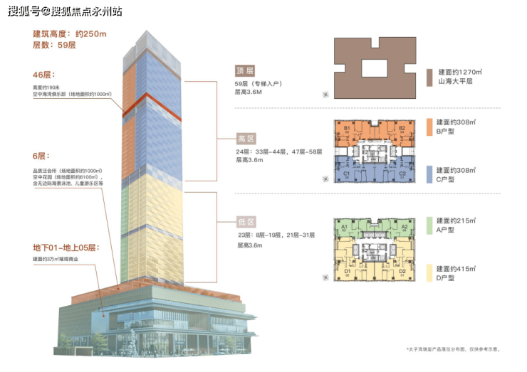 大平面大尺度定位,层高约3.6米,横厅设计确保最大化观景面,全户型纵享环幕视野。项目打造主力建面约215-415㎡纯粹品质公寓共191席,顶层为建面约1270㎡公寓产品。
