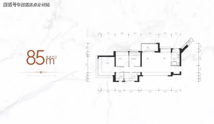 85㎡的3房2卫,设计有2个户型,1个是横厅格局,有东北及西北朝向,1个是竖厅格局,有东北,西南,东南朝向;