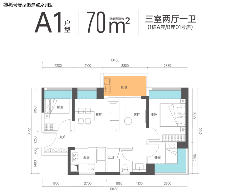 譬如可实现建面约70㎡及80㎡的带玄关三房、建面约100㎡的带主卫四房。