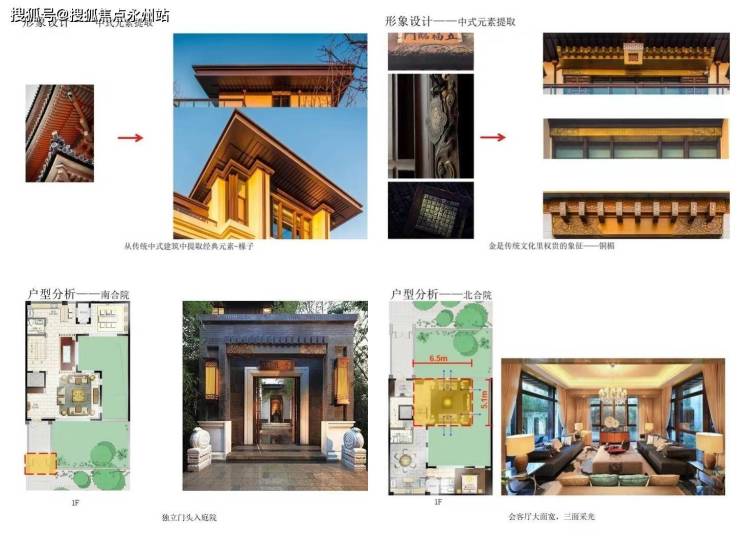 “泰禾北京院子”创造了具有浓郁中国传统情怀和文化底蕴的生活空间,与之呼应的建筑单体采用的新中式风格运用了从传统建筑中提炼出的中式元素:灰瓦粉墙、围合布局、前庭后院,建筑细部注重传统建筑的符号运用,木色凸花窗、中式屋檐、中式宅院门第、镶铜雕花木门、以及抱鼓石和砖雕等传统经典装饰,营造出高雅、宁静、舒适的居住氛围。