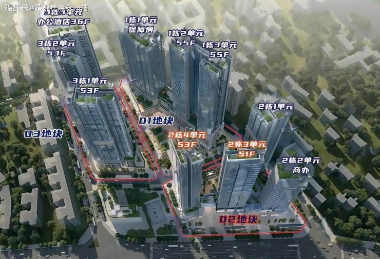 规划为4栋超高层塔楼,2栋一单元住宅174米53层,2栋二单元办公130米27层,2栋三单元住宅168米51层,2栋4单元住宅175米53层。