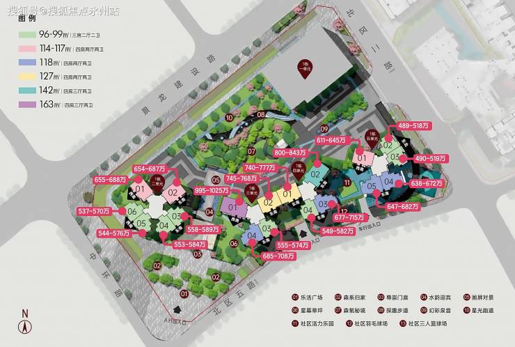 全龄段配套设施:儿童乐园分龄设计0-3岁探索区、4-6岁益智区、7-12岁体能区,配备塑胶跑道与安全围栏。
