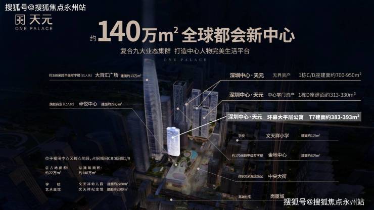 天元位于粤港澳核心位置——深圳中心区正中心,整个项目占地约22万㎡(约占整个中心区的1/9),建筑面积约百万的综合体项目,拥有福田高铁站,超级双口岸(皇岗口岸、福田口岸),城市枢纽——地铁1、2、3、4、11(五条已通车)10、14(两条在建)号线交汇等高效的立体交通。