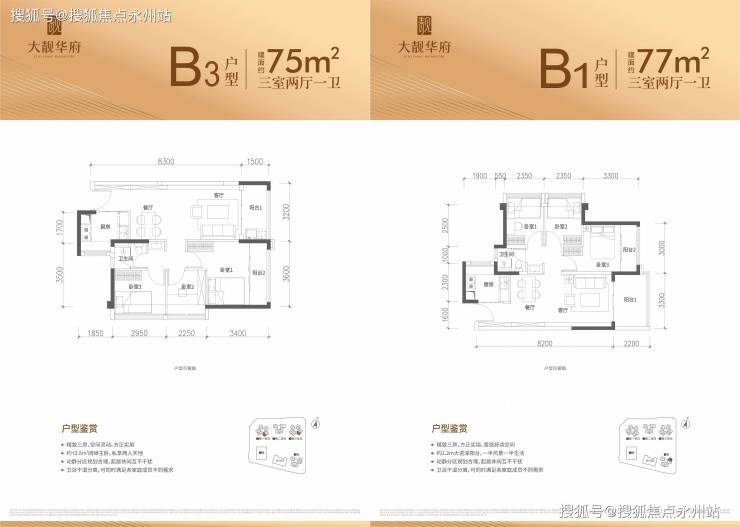 (二)改善型:3 房 1 卫 / 2 卫(75-98㎡)