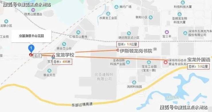 京基御景半山位于龙岗区宝龙街道宝荷片区,依山脚而建,总用地面积约6.3万㎡,规划总建面约31万㎡。容积率:3.45,绿化率:42.23%。由11栋共计15座高层住宅,以及13栋别墅住宅,另有1栋幼儿园和1栋综合楼组成。
