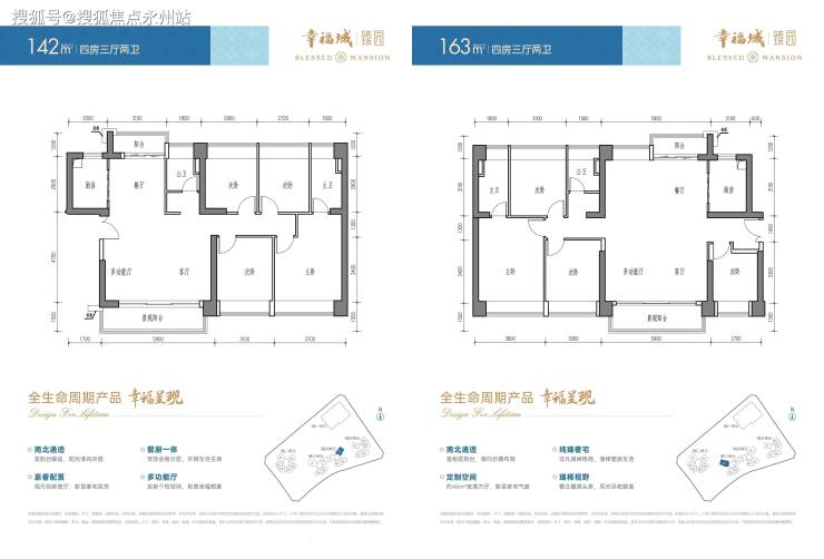 142-163㎡四房三厅两卫(方厅设计)得房率约87.1%-88.25%(含赠送)