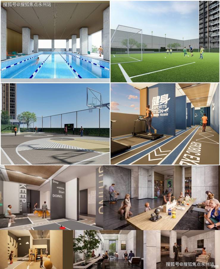 游泳馆、篮球场、mini足球场、儿童游乐场地、健身活动场地等活力功能区;