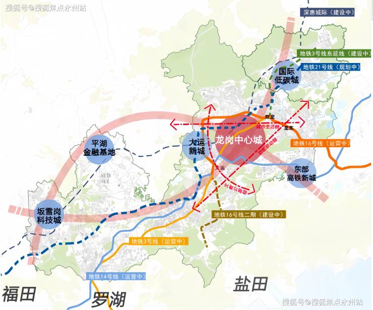 区域蝶变 崛起东部副中心:在龙岗发展一路向东的大趋势下,依托地铁3/16/14号线的轨道交通效能,“东部副中心”强势崛起,地铁16号线东轴方向成龙岗中心城外拓首站,“一芯两核多支点”战略赋能、超百万方城市更新推进,多重势能叠加,区域未来可期。