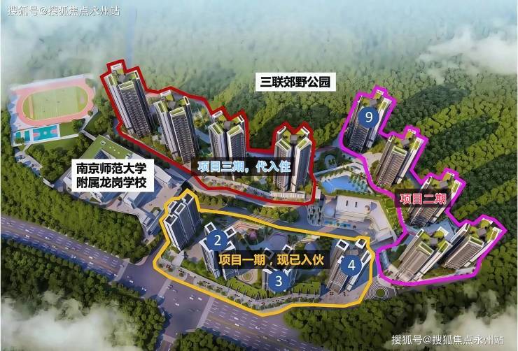 共由9栋总高32-40层高的住宅组成,其中二期5/6/7/8/9号楼总高32F,3期10/11/12/13号楼总高40F,15号楼是1所9班制幼儿园。