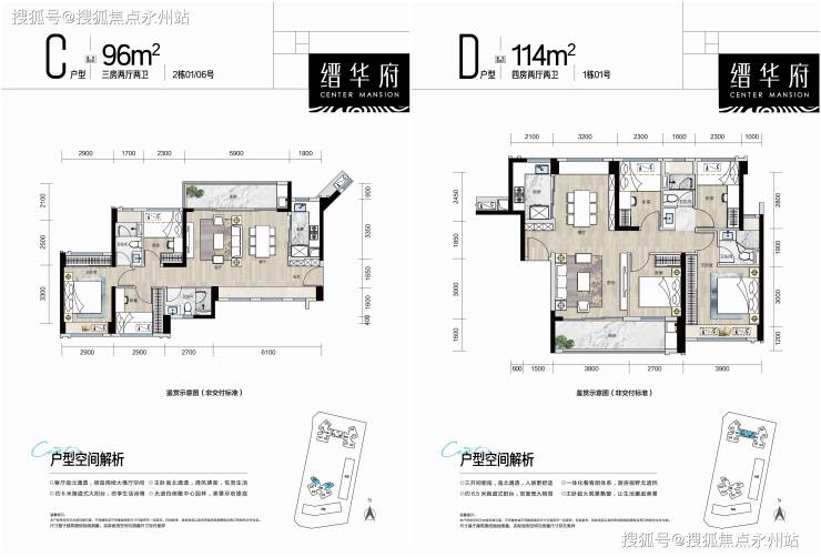 【产品面积】建面约82-96-114㎡3-4房