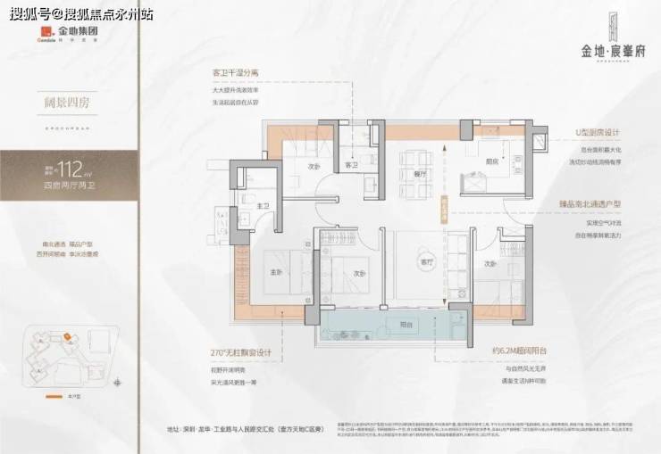 金地·宸峯府项目主推户型为建面约99-133㎡3-4房2卫,户户朝南,5-7米的宽景阳台。
