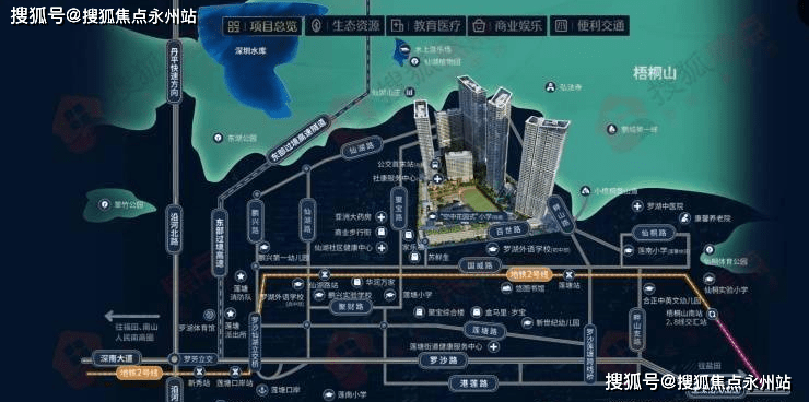 本项目地址位于深圳市罗湖区莲塘街道莲十路与畔山路交汇处,毗邻仙湖植物园和仙桐体育公园。万象罗湖不能少莲塘,作为罗湖东部的后花园,莲塘一直是以生态著名,背靠梧桐山,比邻仙湖植物园,自然资源非常丰富,不过也因过于“自然”从而和“城市”之间有所“间隔”。