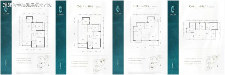 C2户型-89㎡-3房2厅2卫:2栋A座02/03,2栋B座02户型,设计的是竖厅格局,客厅3.5米开间,3个房间宽度分别为3/2.8/2.6米,公卫三段式分离,得房率:90.9%(包含赠送),阳台进深1.5米,东南朝向,看茅洲河景观。