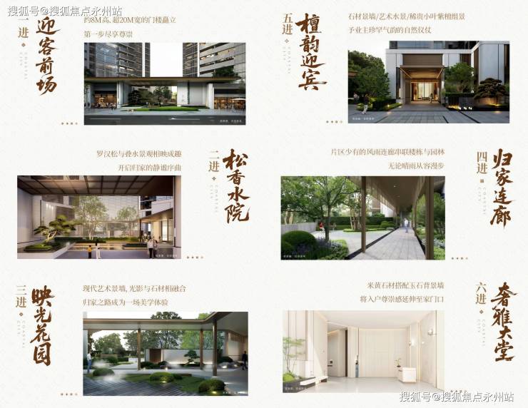 归家动线设计:风雨连廊串联园林与住宅,入户大堂采用9米挑高设计,搭配石材铺装与金属装饰,营造酒店式归家体验。