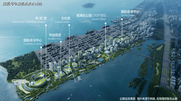 腾讯企鹅岛蓝图融合了科技、文化、商业与教育,规划国际会议中心/总部办公/科技馆/文化馆/K15学校等配套,以总部与科创双轮驱动,为区域发展注入活力 。