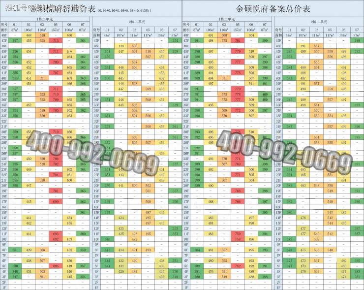 开盘9个点折扣,折扣系数:0.99*0.96*0.98*0.98≈0.913折,折后均价4.23万/㎡,折后单价区间3.94-4.55万/㎡,总价区间344-713万。