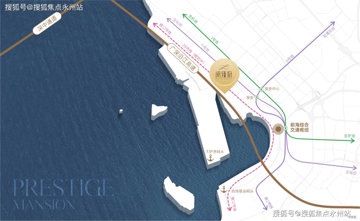 项目地块北面是海韵学校、深航福利房深航假日名居,西面就是大铲湾,南面是湾区产业投资大厦,东面为新安中学(集团)高中部。