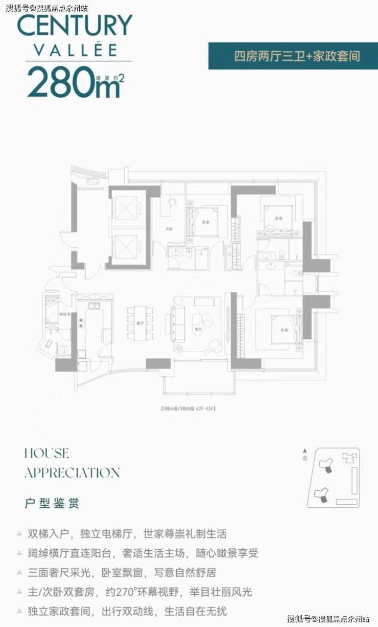 前两次都是公寓,现在住宅首发!还是定位相当高端的纯大平层而且还是无敌景观视野,8梯3户,233㎡/280㎡配备两个独立电梯,386㎡双梯设计,实在任性!