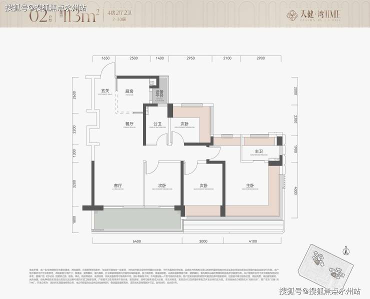 113㎡四房:竖厅南北通透,6.4 米阳台,主卧套房带全景飘窗