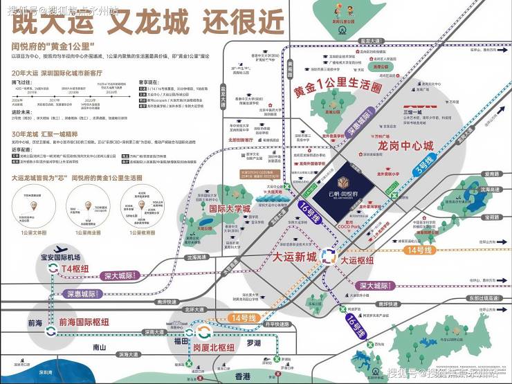 位于龙岗区龙城街道龙翔大道与如意路交汇处东南侧,紧邻大运新城与龙岗中心城核心区,步行约 600 米可达地铁 3 号线爱联站,1 站换乘 14/16 号线及深大城际(预计2026年开通)。
