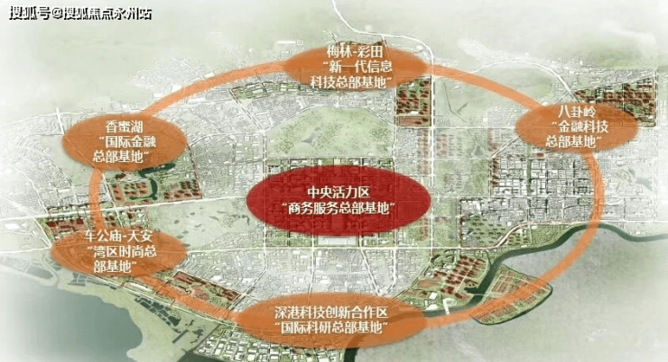 未来,福田除核心外,还将出现香蜜湖国际金融总部基地、车公庙-天安时尚总部基地,深港科技创新合作区、八卦岭金融科技总部基地、梅林-彩田科技总部基地等5大重点发展片区。