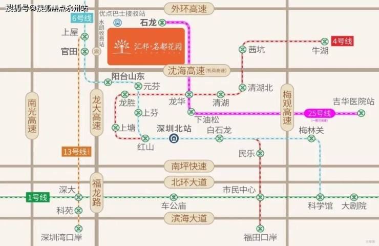 常说地铁一响,黄金万两。汇邦名都花园邻近地铁6号线、13号线(在建)及地铁25号线(已报建)。畅享龙大、南光、广深、沈海(机荷)四大高速路网,社区接驳优点巴士,6条短线直达6大地铁站(龙胜、元芬地铁接驳已开通)、3条快线直达车公庙(已开通)/科技园(已开通)/大剧院等中心区。