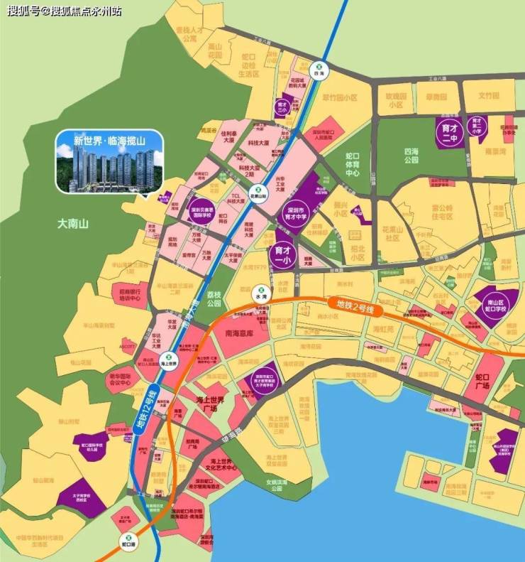 -生态配套:大南山、小南山、赤湾山、四海公园、女娲滨海公园、深圳湾公园、锦园公园、荔枝公园、深圳湾15公里滨海长廊等。