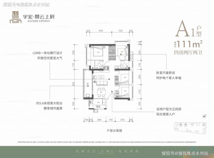 龙岗「宇宏景云上辰」于2025年1月10日取证入市,首推1栋,共195套房源,面积有100㎡的3房2卫,111-118㎡的4房2卫户型,在2026年12月底前带龙岗最高品质精装修交房!