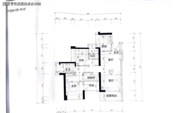 3梯6户,户型为88㎡1户,98㎡横厅1户、竖厅3户,118㎡1户;