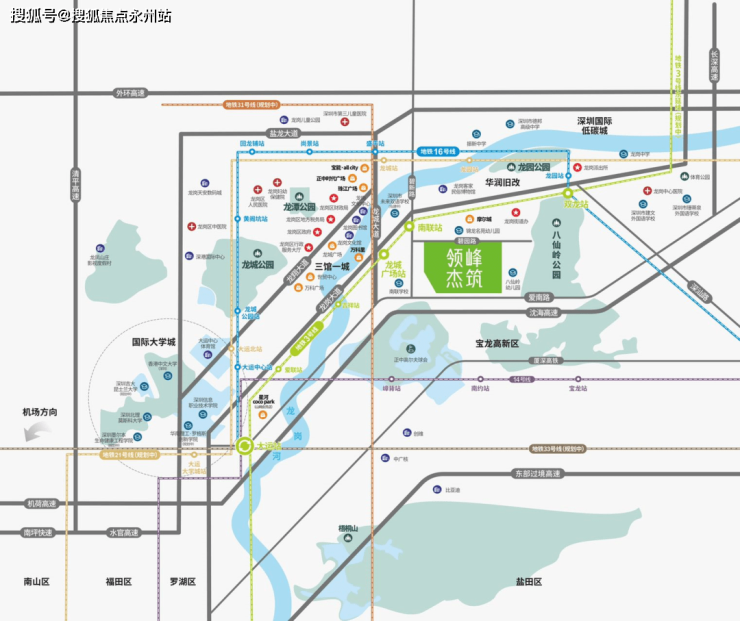 交通:项目距离3号线南联站约1.2公里,可在双龙站切换16号线(在建)。周边清平高速、南坪快速、梅观高速、龙大高速、机荷高速、水官高速6条高速体系,交通方便快捷。