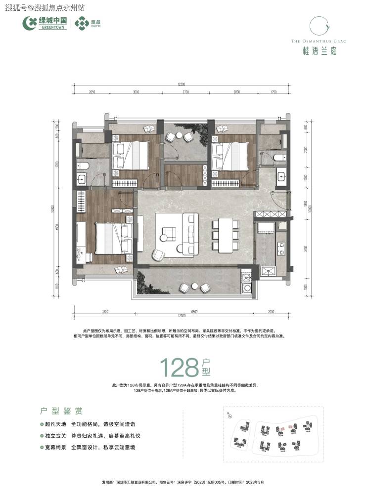 主力产品:89-128㎡三至四房,得房率约 78.85%(不含赠送)或 90%(含赠送),空间利用率高于光明中心区同类项目。