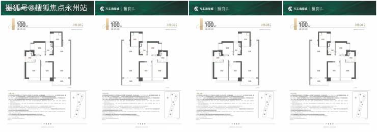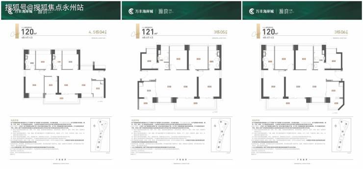 瀚府产品分布:3栋:4梯6户,层高3.1米,01-04户型100平3房2卫,05-06户型120平4房2卫