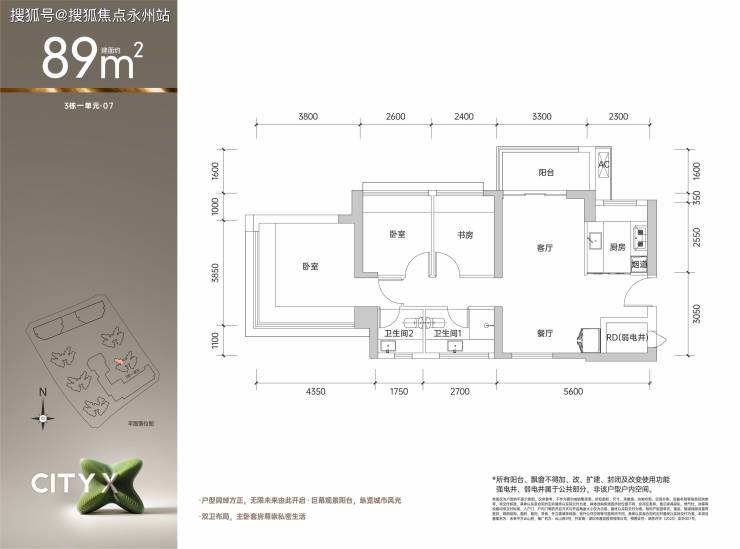 适合人群:追求舒适性的三口之家,东南/西南朝向户型性价比更高。