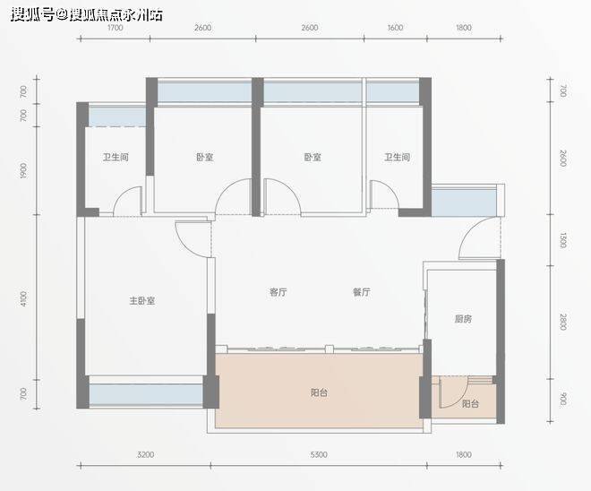 约5.3米开间大横厅,阔绰气派;主卧约3.2米宽飘窗;南向双阳台,兼得美学与实用。