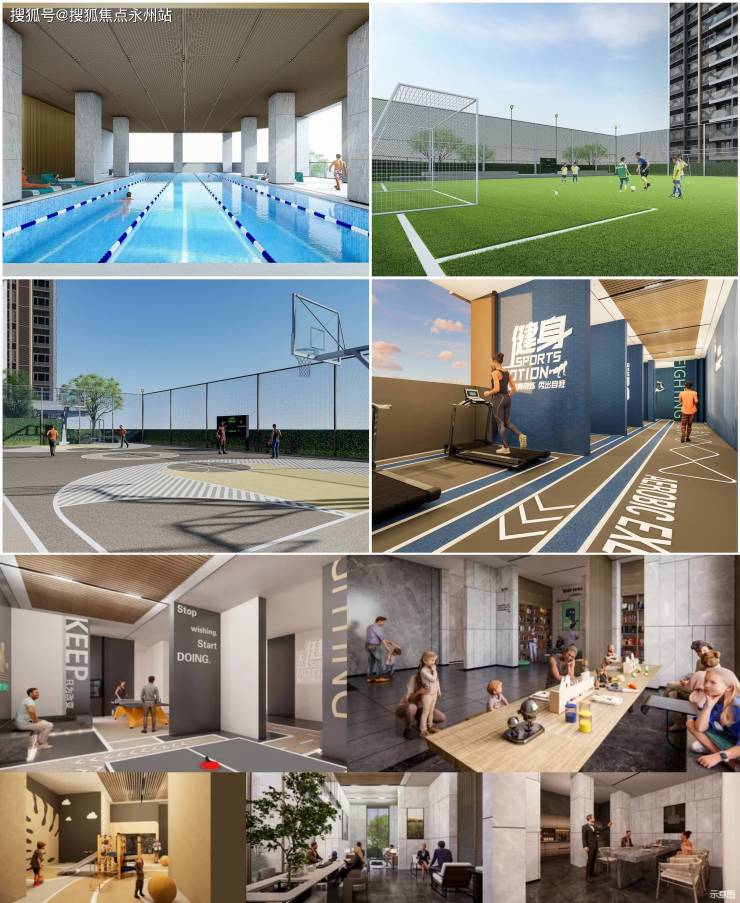 游泳馆、篮球场、mini足球场、儿童游乐场地、健身活动场地等活力功能区;