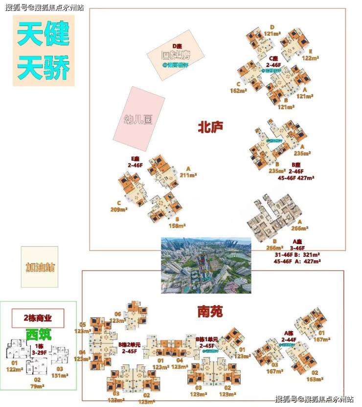 1栋B座:148米,46层,共84户,朝南为主,三梯两户,约235平,401平(顶复)
