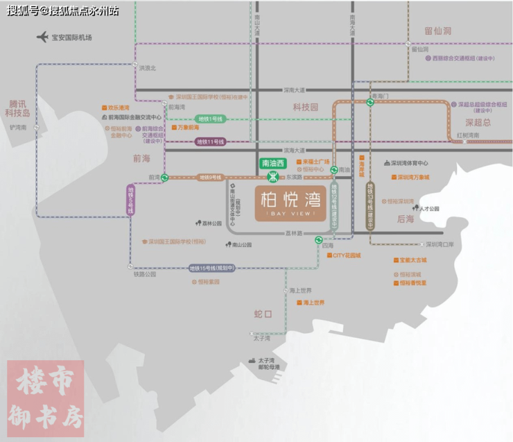 恒裕柏悦湾位于深圳市南山区东滨路与向南路交界处,属 地铁9号线 “南油西站” 上盖物业,是南山超级总部半岛的中心板块。