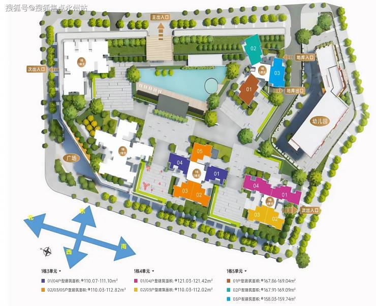 B区由3栋三个单元及裙房组成,其中一二单元层数45层,三单元层数39层,总户数474套,套内面积小于90㎡的有369套,占比77.85%,均为商品住宅。