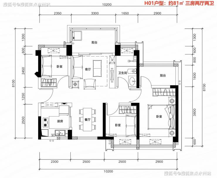 约81㎡三房两厅两卫:堪称“空间魔术师”,实现了功能与舒适度的完美平衡,无论是三代共居还是二孩家庭,都能从容舒享。双卫生间设计,空间功能更优越,早晚高峰期不再拥挤,居家生活更高效。主卧独立套房,精巧三房也能私享私密与尊崇,满足年轻家庭对品质生活的追求。