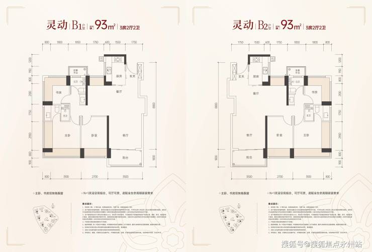93㎡三房两卫:空间更舒展,部分户型采用横厅设计,适合首次改善需求。